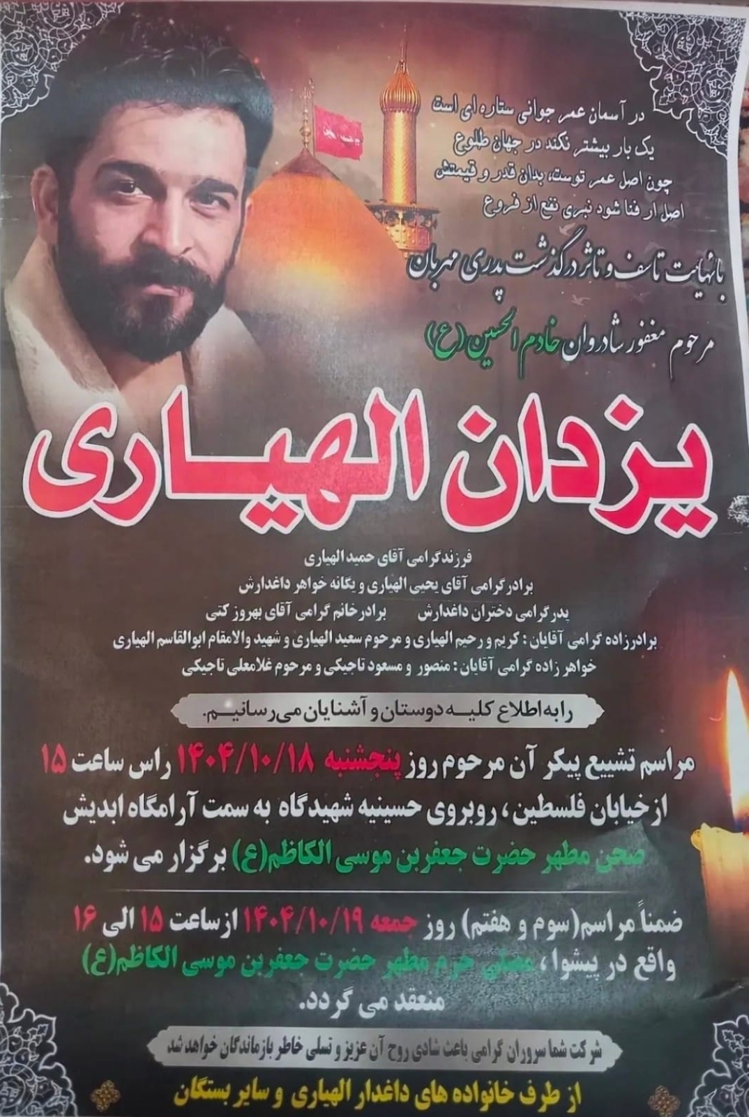 تصویر زیر آگهی ترحیم یزدان الله‌یاری است: