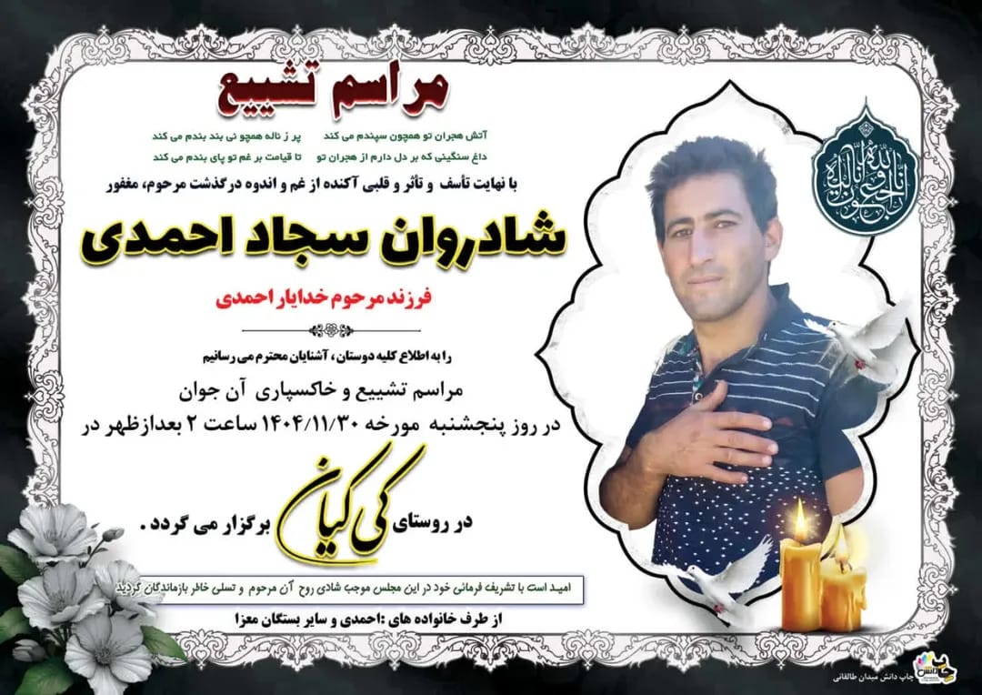 تصویر زیر آگهی ترحیم سجاد احمدی است: