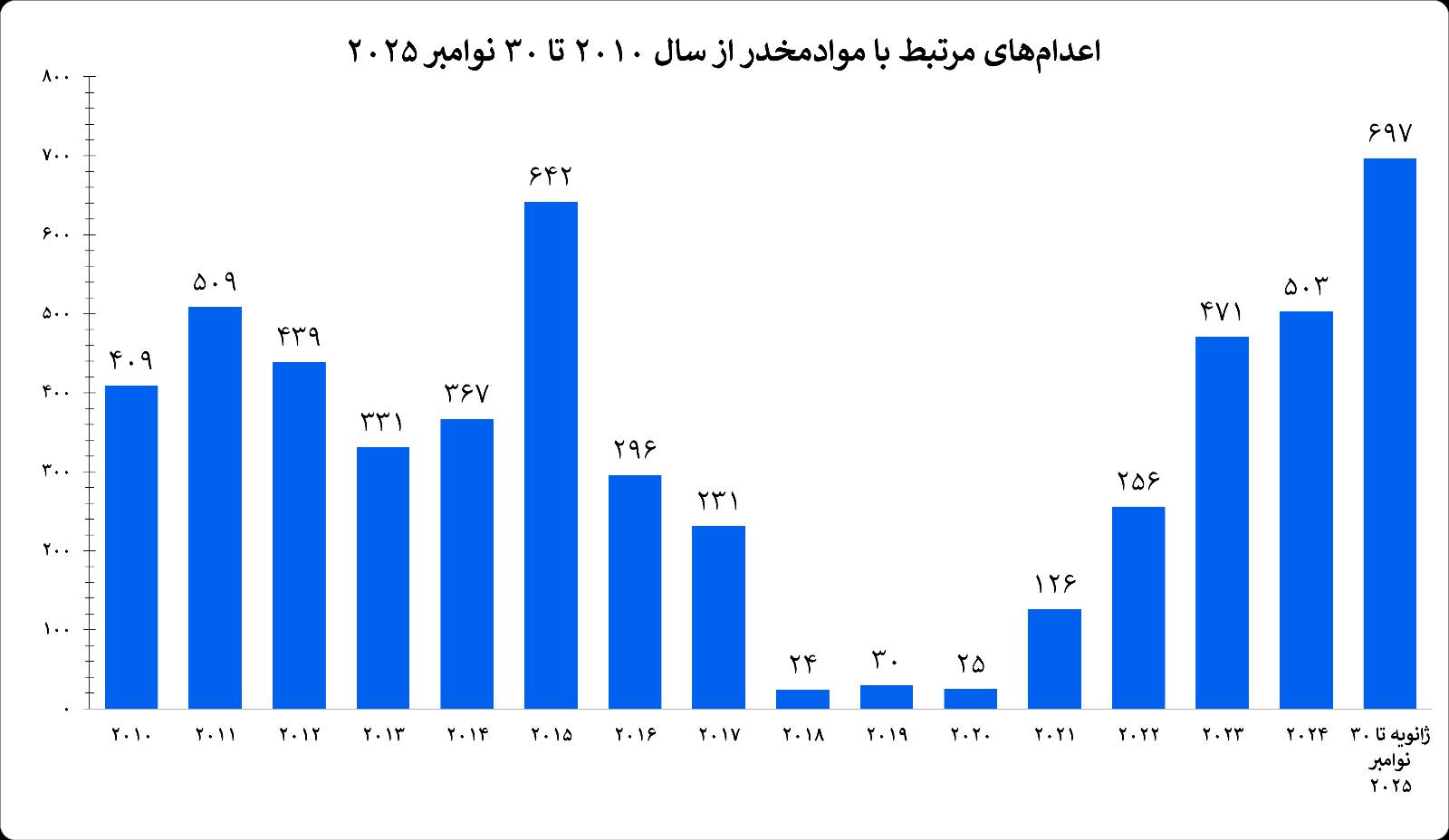 با نزدیک‌شدن به پایان سال ۲۰۲۵، حکومت ایران این سال را با شماری از اعدام‌ها به پایان می‌برد که از اواخر دهه ۶۰ تاکنون بی‌سابقه بوده است. اگرچه آمار نهایی اعدام‌ها در سال ۲۰۲۵ هنوز در حال راستی‌آزمایی است، اما همین آمار قطعی‌شده کنونی نشان می‌دهد که در سال جاری میلادی اتهام افزون‌بر ۷۰۰ مورد از ۱۵۰۰ فرد اعدام‌شده، جرایم مرتبط با مواد مخدر بوده است. افرادی که اعدام شده‌اند، عمدتاً از به‌حاشیه‌‌رانده‌شده‌ترین اقشار جامعه ایران بودند: ازجمله افراد کم‌بضاعت، اقلیت‌های اتنیکی، اتباع خارجی و کسانی که دسترسی مؤثر به دفاع حقوقی نداشتند.